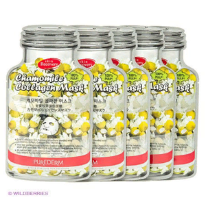 Purederm / Маска Успокаивающая коллагеновая с экстрактом ромашки Набор из 4 шт. Маска на тканевой основе с экстрактом Ромашки и Витамином Е оказывает противовоспалительное.