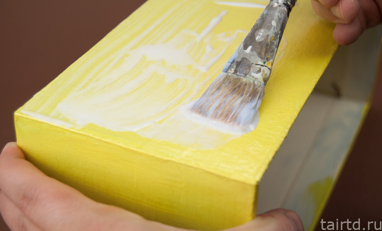 На последнем этапе необходим финальный слой клея или лака. При таком способе поверхность получается ровной и красивой.