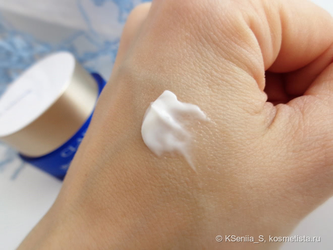 Текстура: легкий крем белого цвета. В инструкции написано, что в составе средства присутствуют золотистые микрочастицы, видимо они настолько мелкие, что мне ни разу не довелось их увидеть.