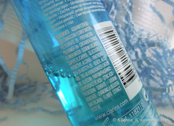 Состав: Лосьон предназначен для снятия не водостойкой косметики с глаз. Купила его специально для тушей, которые удаляются «верёвочками» (тёплой водой смывать тушь не нравится, т.к. «веревочки» потом по всему лицу). Прикладываю к глазу обильно смоченный в лосьоне ватный диск, держу полминуты и удаляю макияж. Лосьон мягко действует, лёгкий макияж удаляет хорошо, не нужно тереть и травмировать глаза. Лосьон не раздражает глаза, пленки не оставляет, лишь ощущение чистоты и свежести. Подходит для людей с чувствительными глазами и тем, кто носит контактные линзы. Продуктом довольна, это мой второй флакон.