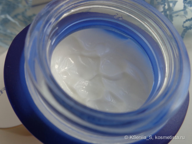 Объем 50 мл, сделан во Франции, срок годности после вскрытия 18 мес. Оформление: упакован крем аналогично дневному, заключен в баночку из матового стекла, но только синего цвета.