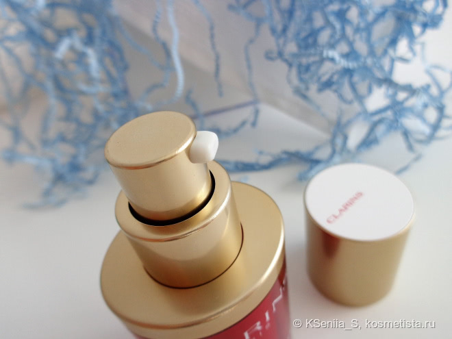 Объем 15мл, сделан во Франции, срок годности после вскрытия 18 мес. Оформление: продается концентрат в коробке, внутри, как полагается, вкладыш-инструкция. Флакон выполнен из пластика в красно-золотой гамме, содержимое через него не просматривается, нельзя проконтролировать расход. У средства удобный дозатор, носик — резиновый, крем поступает через незаметную глазу прорезь. После использования остатков крема на нем не остается, отверстие не забивается.