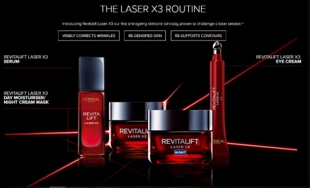Учёные компании L’Oreal разработали серию антивозрастных продуктов «Revitalift Laser X3». В её состав входят дневной крем «Filler», сыворотка для век, крем по уходу за областью вокруг глаз, ночная крем-маска для лица.