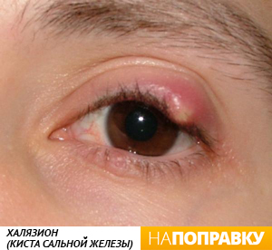 Достаточно часто верхнее или нижнее веко отекает из-за образования халязиона — кисты сальной железы. Халязион может иметь размеры от едва заметного — до величины виноградины. Это медленно растущее, обычно безболезненное образование. Однако при присоединении инфекции, халязион краснеет и начинает болеть.